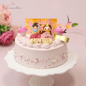 桃の節句ひな祭りの御祝に。可愛い桃色の苺のデコレーションケーキ。